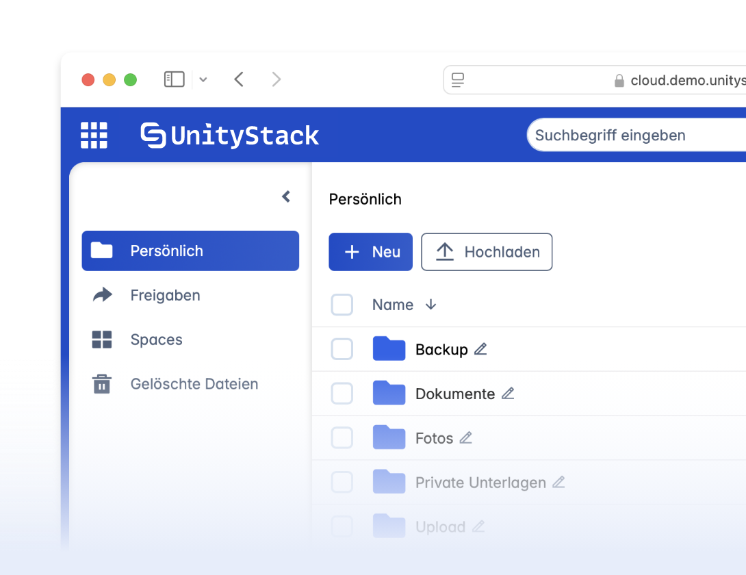 Wir setzen auf bewährte Open-Source-Technologien, weil sie sicher, flexibel und unabhängig sind. Mit Unitystack nutzt du leistungsstarke Systeme, ohne dich an proprietäre Anbieter zu binden – deine Daten bleiben unter deiner Kontrolle.